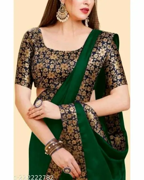 Vkaran Women's Green Art silk Lace Work Saree With Blouse