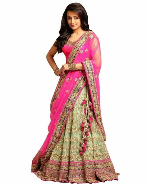 Vkaran women's Green Net Solid Embroidered Lehengha Choli.