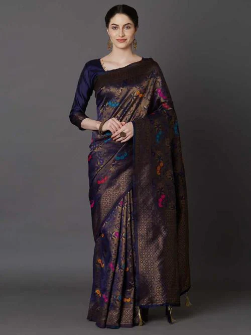 VM TEJANI Women Blue Self Design, Plain Art Silk Bollywood Saree