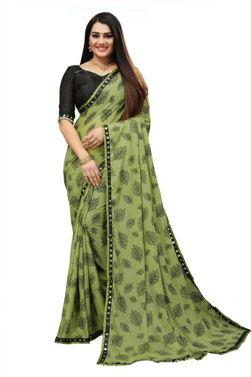 VM TEJANI Women Mahendi Printed Lycra Blend Bollywood Saree