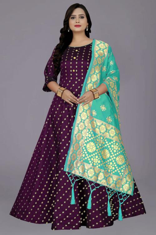 VM Tejani Women Multicolor Woven Design Jacquard, Silk Blend Semi Stitched Anarkali Gown