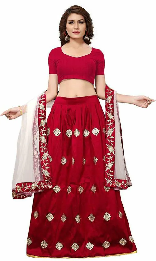 VM TEJANI Women Red Embroidered Silk Blend Lehenga Choli Set With Dupatta
