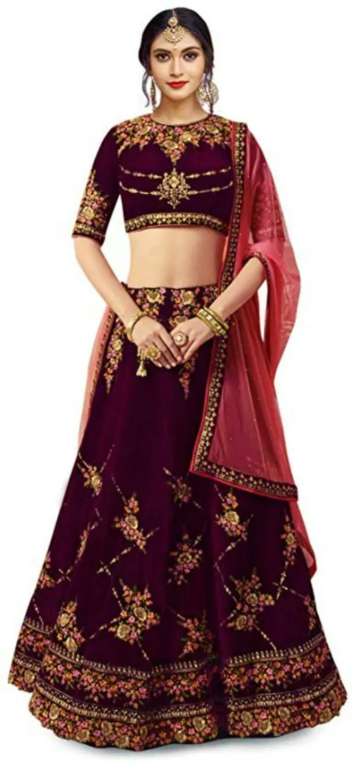 VM TEJANI Women Red, Maroon Embroidered Pure Silk Lehenga Choli Set With Dupatta