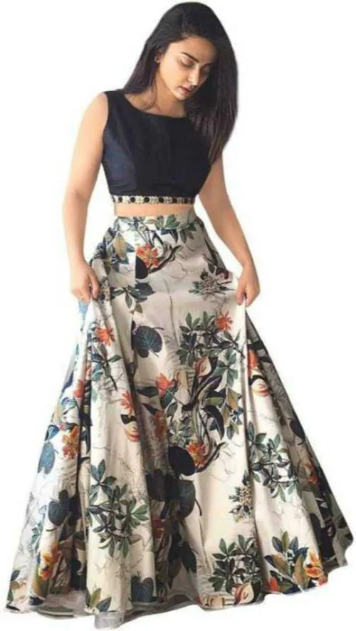 VM TEJANI Women White Floral Net Lehenga Choli Set With Dupatta