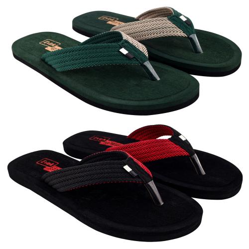 Vokline Mens Comfortable Trending And Stylish Multicolor Embozing Flipflop (Pack Of 2) Slippers (Black,Mehandi)