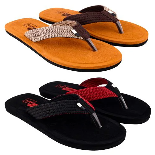 Vokline Mens Comfortable Trending And Stylish Multicolor Embozing Flipflop (Pack Of 2) Slippers (Tan,Black)