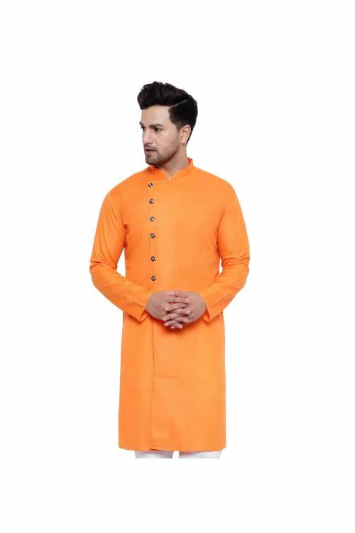 VOLRIX Men's Orange Stylish Kurta, Designer Kurta, Pure Cotton Kurta For Men