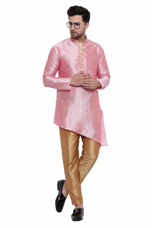 VOLRIX Men's Pink Short Silk Kurta With Pant, Designer Kurta For Men Stylish Kurta