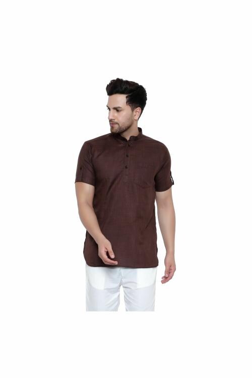 VOLRIX Men's Wear Half Sleeve Pure Cotton Brown Short Kurta