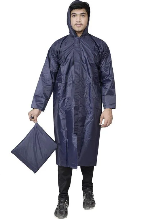 It is made of single coated layered semi-Nylon Fabric. It has tape on the back of stitching to protect water from entering inside during rain. The dress that you wear will not get wet in the rain. It is foldable, light weight, waterproof with hooded rain coats for men Recommended Product will not sink water inside . It is good for heavy rain. No water leakage inside. It provides leakage protection while during roaming in rain, riding a bike in moderate to heavy rain. It can be used while riding cycle. It comes with a carry bag cover for keeping coat.