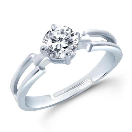 Vshine Adjustable Ring Single Stone Solitaire's Shaped Exclusive Collection Fashionable Rhodium Silver Plated American Diamond Studded Free Size Stylish Fancy Party Wear Latest Design Fashion Jewellery Ring Collection for Women, Girls, Wife & Girlfriend
