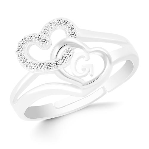 Vshine Adjustable Stylish Valentine Love Initial Alphabet Letter "G" Diamond Studded Heart Propose Day Ring Fancy Party Wear American Diamond Free Size Silver Rhodium Plated Fashion Jewellery for Women, Girls, Wife, Girlfriend and Loved ones