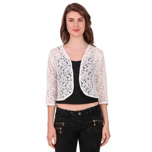 WE-FLY Women's Netted Stylish Short Shrug (White)