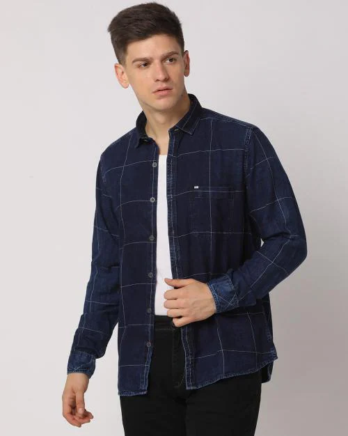 Men Windowpane Checked Slim Fit Cotton Shirt