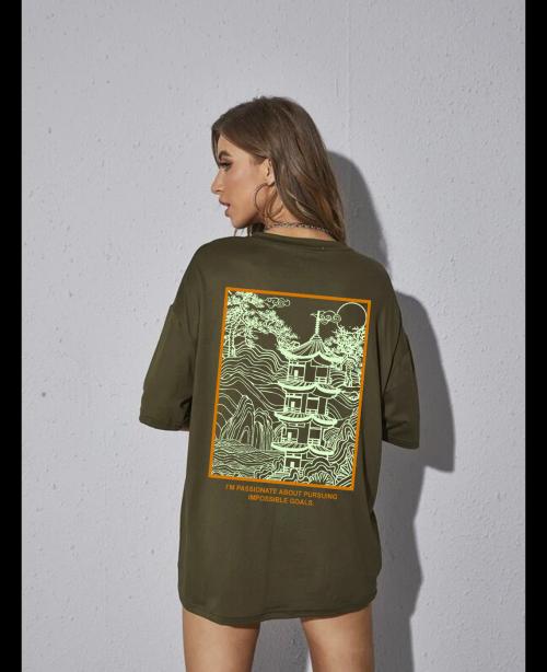 - Oversized T-shirt With Big Bold Print on Back And Small Print on Front
