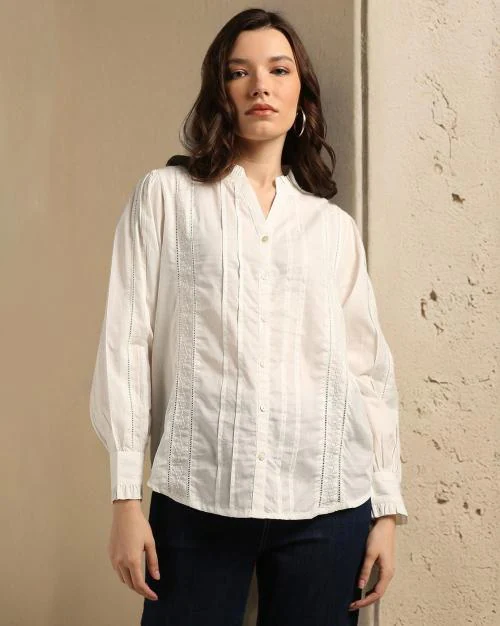 Women Embroidered Relaxed Fit Shirt with Ruffles