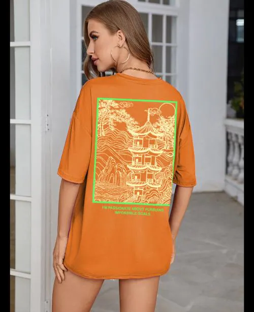 - Oversized T-shirt With Big Bold Print on Back And Small Print on Front