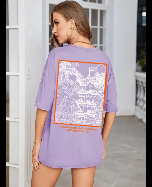 - Oversized T-shirt With Big Bold Print on Back And Small Print on Front