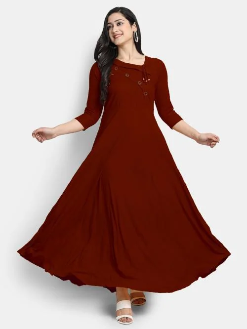 Women Maroon Solid Maxi Dress