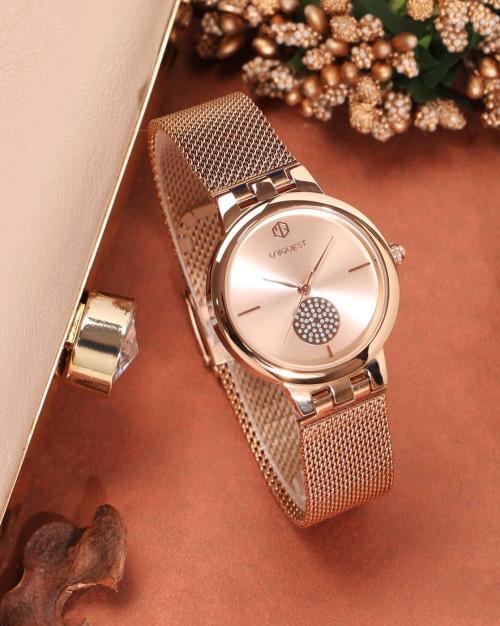 Rose Dial Analogue Fashion Watch with Mesh Strap for Women