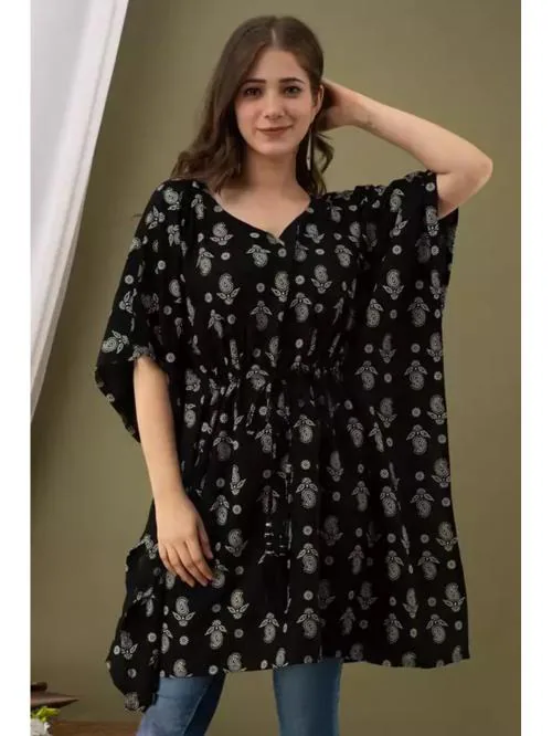 Womens Polyester Printed V-Neck Kimono Sleeves Kaftan Tops (M-KFT-12)