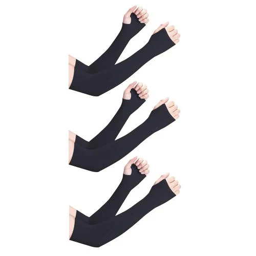 XJARVIS Arm Sleeves UV Sunblock Protection With Thumb Hole for Men & Women Perfect for Running, Cycling, Driving, Basketball, Football & Outdoor Activities, Pack of 3 (Black)