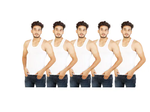 Xmer Men Casual Solid White Vest Pack of 5 Piece 100% Pure Cotton