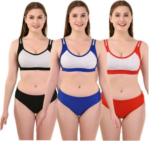 Yana Women Multicolor Cotton Blend Set Of 3 Bra And Panty (34)
