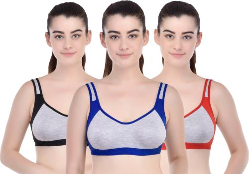 Yana Women Multicolor Solid Cotton Blend Pack Of 3 Sports Non Padded Bra (40)