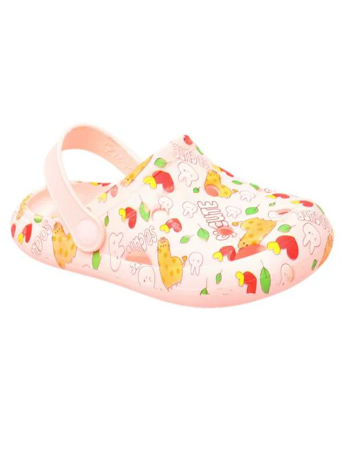 Yellow Bee Bunny and Heart Printed Clogs for Girls - Pink
