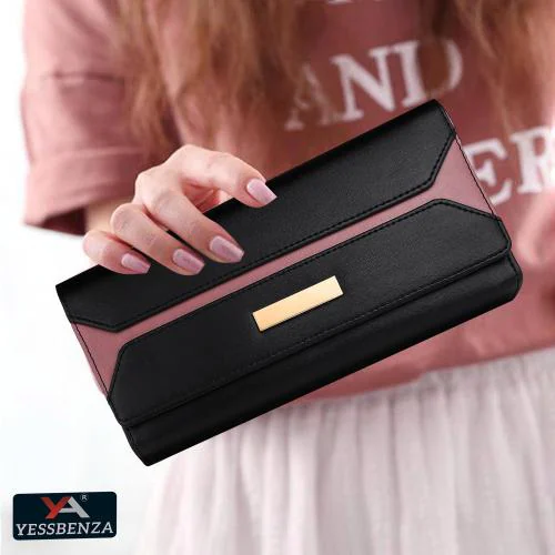 YESSBENZA Women's Faux Leather Black Hand Clutch Mobile Handbag purse 6 Card Slots YAFC-102