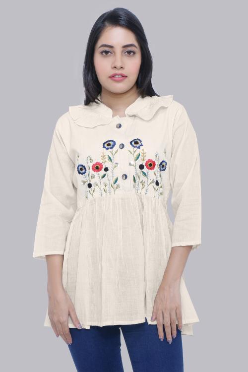 YOELLA Women Hand embroidery Work Round Neck Flored Tunic