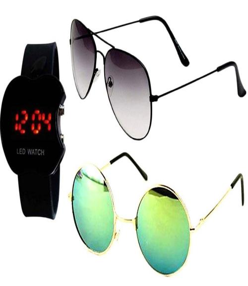 Younky Combo of Stylish Aviator & Round Sunglasses for Men And Women |SPP022-867|Green| With Led Watch