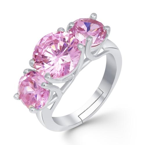 Zalkari Classy Pink Sapphire Three Stone 925 Sterling Silver Womens Gift Ring