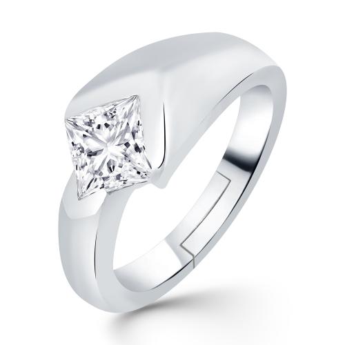 Zalkari Trendy Solitaire Round 925 Sterling Silver Mens Wedding Ring