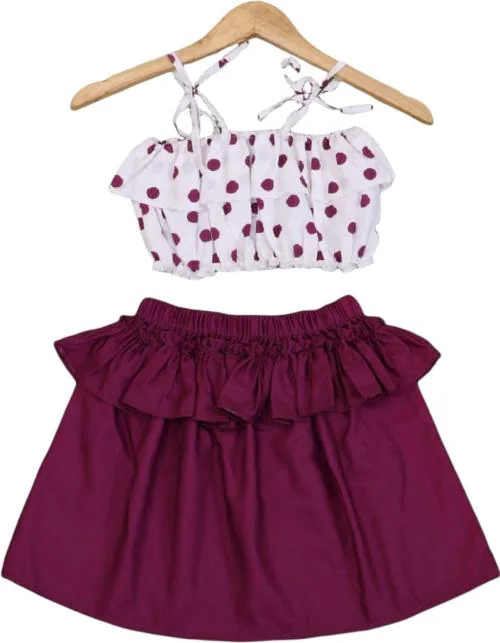 Zevbisa Girls Printed White And Purple Viscose Rayon Casual Top And Skirt (2 - 3 Yrs)