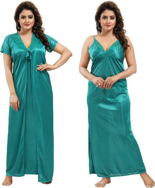 Zionity Women Light Green Lace Satin Nighty