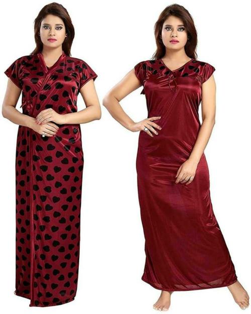 Zionity Women Maroon Printed Satin Nighty (M)