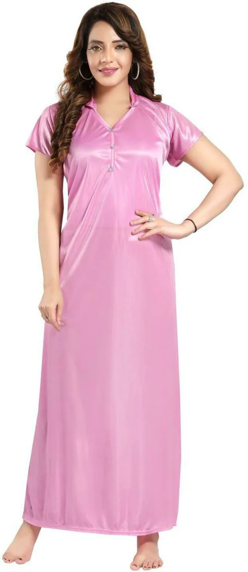 Zionity Women Pink Solid Satin Nighty