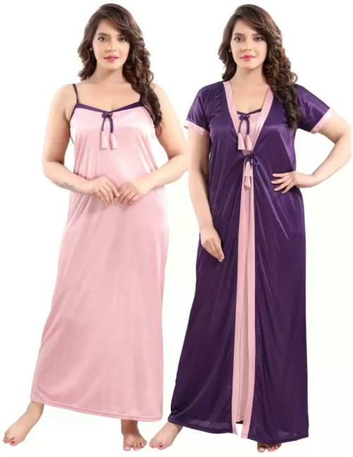 Zionity Women Purple Solid Satin Pack of 2 Nighty