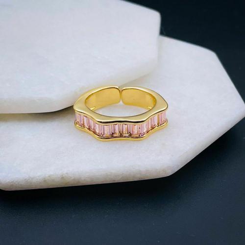 Zivom Ruby Pink Baguette Invisible Set 18K Gold Anti Tarnish Open Back Ring For Women