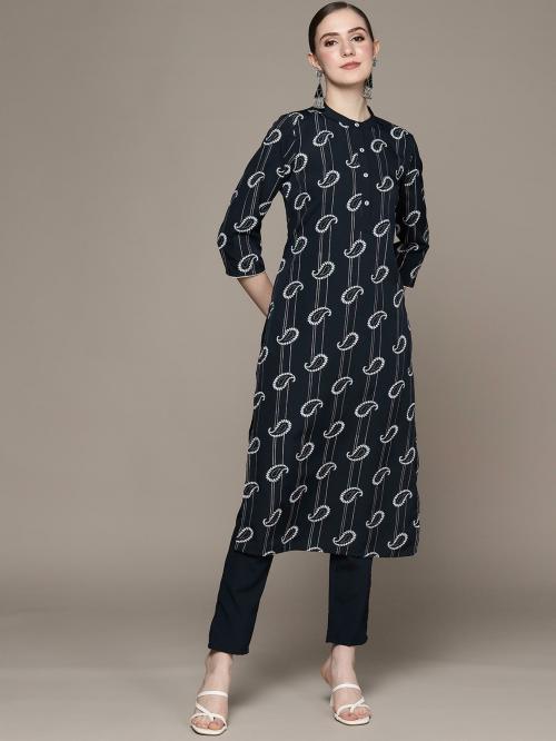 Ziyaa Women Dark Blue Floral Kurta Pant Set