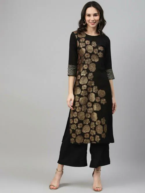 Ziyaa Women's Black Printed Kurta Palazzo Set