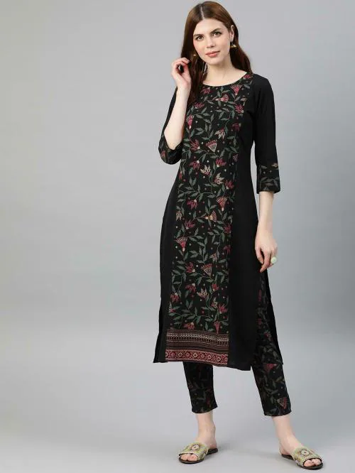 Ziyaa Women's Black Printed Kurta Pant Set