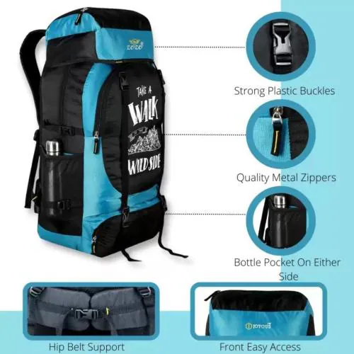 ZOZO BAGS Sky Blue Polyester Travel Rucksack - 70 L