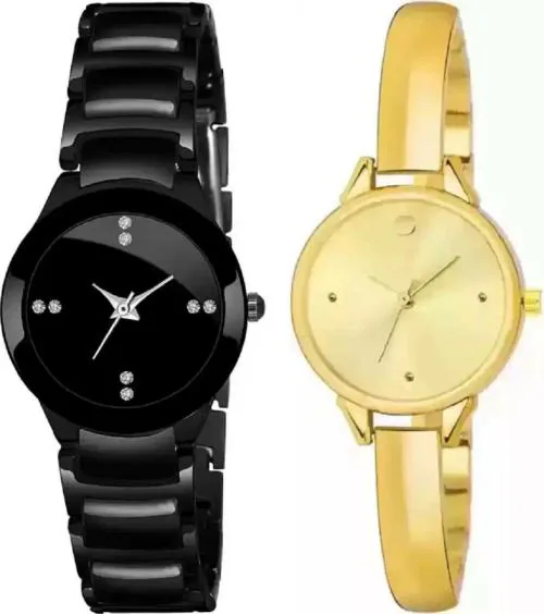 Zuperia Black Lovers Hot And Cool Looking Crazy Style Bracelet Round Dial Analog Watch For Women And Girls - Pack of 2