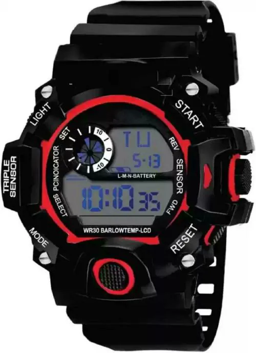 Zuperia Digital Black Dial Black Strap Watch For Boys (Zx- G Shock Red) (Pack Of 2)