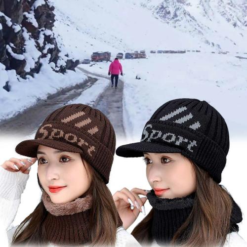 ZURU BUNCH Pack of 2 Woolen Winter Cap for Women with Neck Muffler, Hat Women Plus Fluffy Beanie Cap Letter Cap Two-Piece Knitted Hat Warn Soft for Snow, Home, Outdoor (Brown & Black)