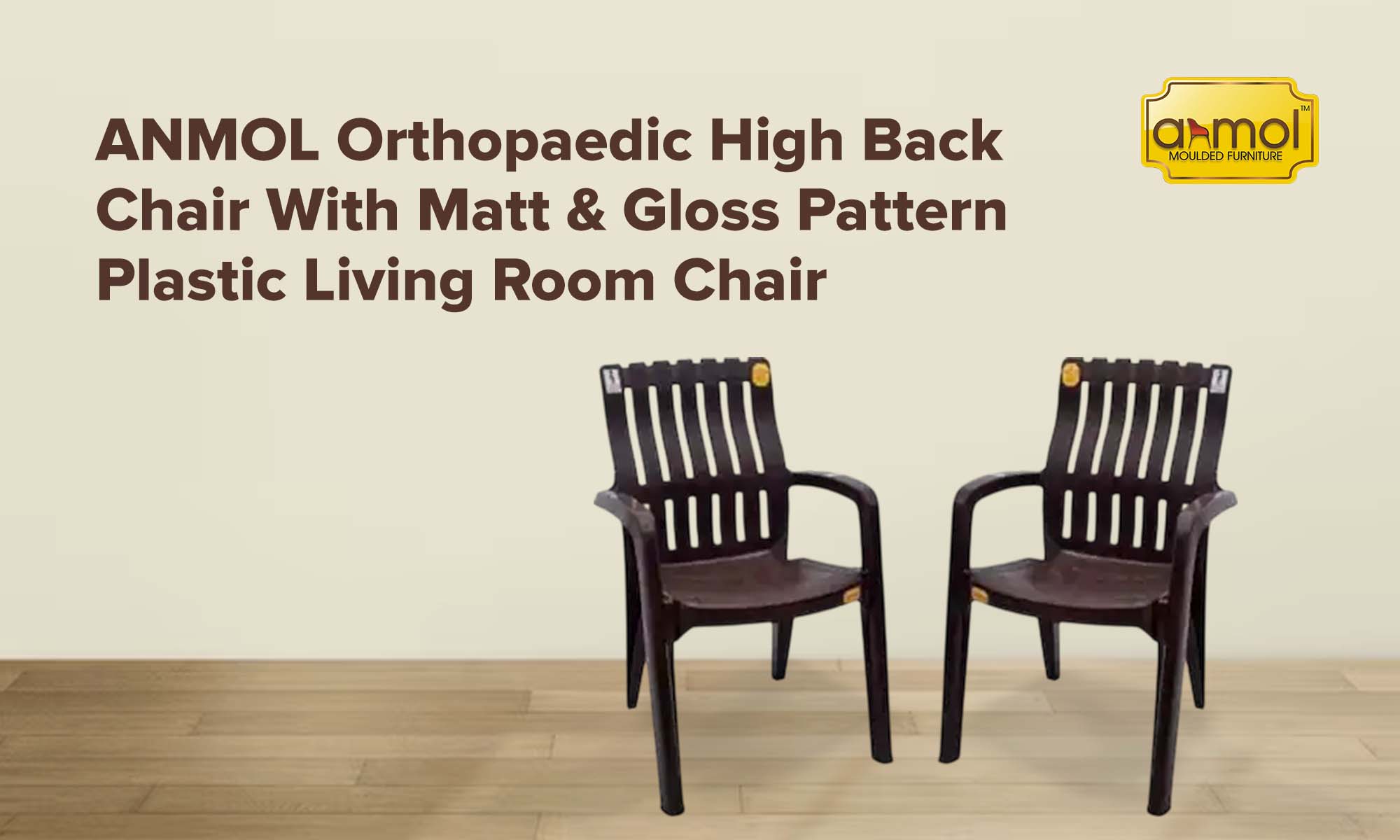 Anmol Orthopaedic high back chair with Matt & gloss pattern Plastic Living Room Chair (Finish Color - Brown, Pre-assembled)-Pack of 4