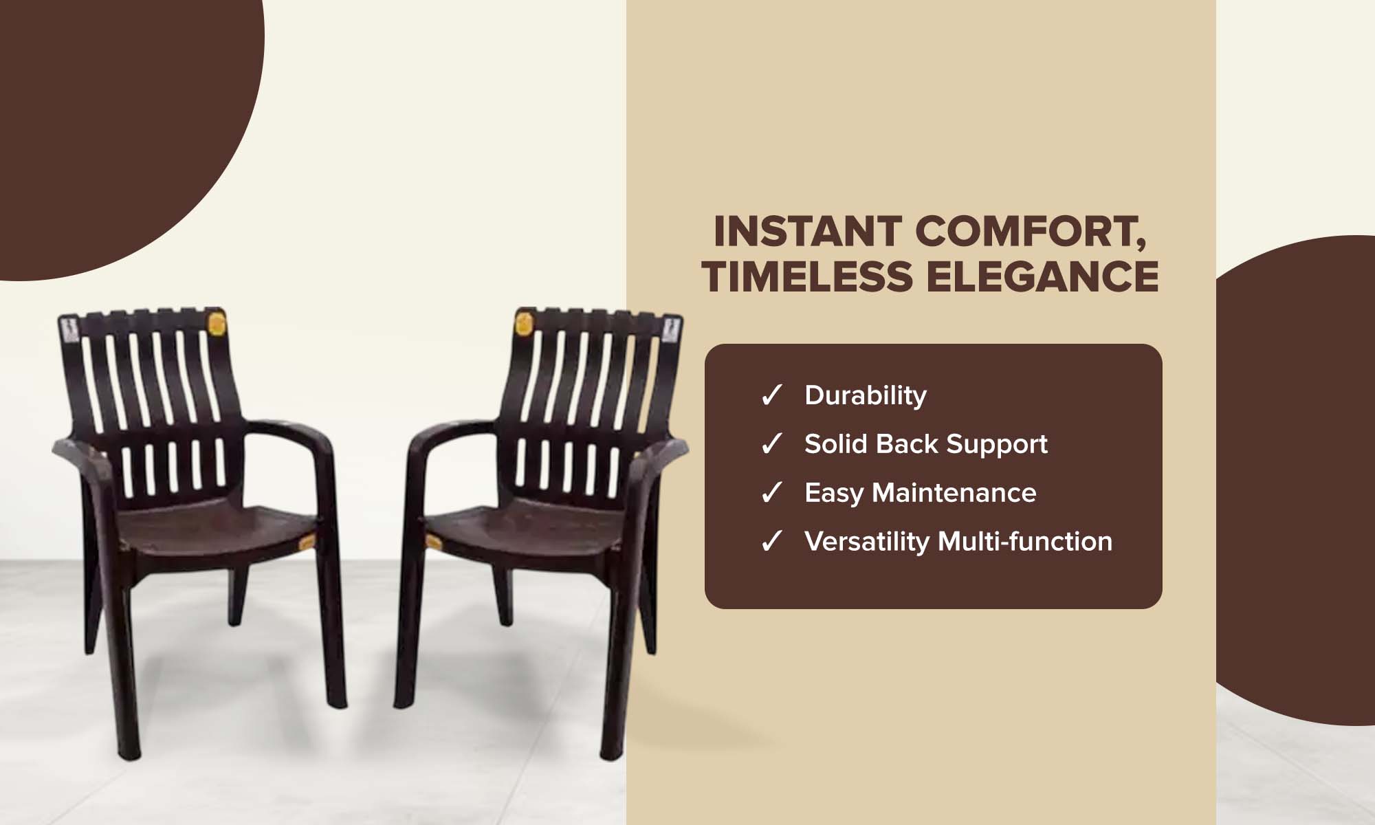 - These chairs are light weighted which makes our chairs more convenient to move/shift from one place to another.